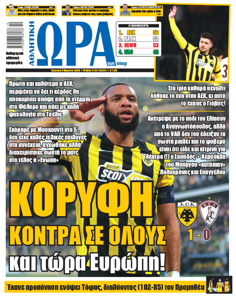 Κώστας Τσίλης Εδώ που έχει φτάσει το πράγμα, όποιος παίρνει τους τρεις βαθμούς 08/03/2026 ΜΠΑΣΚΕΤ ΑΕΚ Βαθμολογία GBL: Η ΑΕΚ στο -1 από τον Παναθηναϊκό! 08/03/2026 SUPER LEAGUE Super League: Ο Αστέρας AKTOR «βουλιάζει» στη Β’ Εθνική, ηττήθηκε (0-1) και από τον τελευταίο Πανσερραϊκό! 08/03/2026 ΠΟΔΟΣΦΑΙΡΟ ΑΕΚ Το… χέρι του Μούργου: Απέναντι στον ΠΑΟΚ ακυρώθηκε το γκολ, με την ΑΕΚ… κανένα πέναλτι! (VIDEO) 08/03/2026 ΠΟΔΟΣΦΑΙΡΟ ΑΕΚ Η οικογένεια της ΑΕΚ ευχήθηκε για τα γενέθλια του Δημήτρη Μελισσανίδη! (ΦΩΤΟ) 08/03/2026 ΠΟΔΟΣΦΑΙΡΟ ΑΕΚ Παύλος Παπαϊωάννου: «Ο κόσμος της ΑΕΚ δεν με ξέχασε, ήταν ότι καλύτερο για εμένα» (VIDEO) 08/03/2026 ΠΡΩΤΟΣΕΛΙΔΑ ΠΡΩΤΟΣΕΛΙΔΟ08/03/2026 ΡΟΗ SUPER LEAGUE «Έκλεψε» τον βαθμό ο Βόλος, 1-1 με τον ΟΦΗ 08/03/2026 | 19:01:36 ΜΠΑΣΚΕΤ Ο πρόεδρος του Ηρακλή μίλησε για το μέλλον του Ζόραν Λούκιτς (VIDEO) 08/03/2026 | 19:00:57 ΠΟΔΟΣΦΑΙΡΟ ΑΕΚ Η παρακάμερα του ΑΕΚ-ΑΕΛ: Τα πανηγύρια στο γκολ του Μουκουντί, η όμορφη στιγμή του Γκατσίνοβιτς (VIDEO) 08/03/2026 | 18:44:42 ΜΠΑΣΚΕΤ Το buzzer-beater του Έντλερ-Ντέιβις που χάρισε τη νίκη επί του Παναθηναϊκού (VIDEO) 08/03/2026 | 18:39:14 SUPER LEAGUE Κλάματα των παικτών του Αστέρα AKTOR μετά την ήττα από τον Πανσερραϊκό (VIDEO) 08/03/2026 | 18:26:52 ΠΑΡΑΣΚΗΝΙΑ Η τεράστια ανθοδέσμη του Γιόβιτς στη σύζυγο του για την Ημέρα της Γυναίκας (ΦΩΤΟ) 08/03/2026 | 18:23:55 ΠΑΡΑΣΚΗΝΙΑ Μάριος Ηλιόπουλος: Νίκη στην πρώτη ανάβαση της σεζόν! 08/03/2026 | 18:14:11 ΜΠΑΣΚΕΤ Ο Ηρακλής νίκησε (76-74) με μπάζερ μπίτερ τον τραγικό Παναθηναϊκό! 08/03/2026 | 17:59:38 ΔΙΕΘΝΗ Χιμένες: «Είμαστε οι κλόουν στο τσίρκο, ώρα για ξεκούραση» 08/03/2026 | 17:40:31 SUPER LEAGUE Αστέρας AKTOR – Πανσερραϊκός: Πέντε οπαδοί στο πλευρό της ομάδας των Σερρών 08/03/2026 | 17:21:46 SUPER LEAGUE 2 Κόλλησαν οι «Αργοναύτες», 0-0 με τον Μακεδονικό 08/03/2026 | 17:10:34 ΜΠΑΣΚΕΤ ΑΕΚ Η Τόφας ηττήθηκε από την Εροκσπόρ πριν τον αγώνα με την ΑΕΚ στη SUNEL Arena! 08/03/2026 | 16:58:04 ΜΠΑΣΚΕΤ Πρόεδρος Παρτίζαν: «Δεν θα προσφέρουμε ξανά συμβόλαια πάνω από 1,5 εκατ. ευρώ» 08/03/2026 | 16:50:32 ΔΙΕΘΝΗ Αποχωρεί ως ελεύθερος από την Ντόρτμουντ ο Μπραντ το καλοκαίρι 08/03/2026 | 16:32:11 ΠΟΔΟΣΦΑΙΡΟ ΑΕΚ H F.C Tripolis Soccer Academy στην Allwyn Arena (ΦΩΤΟ) 08/03/2026 | 16:16:21 ΔΙΕΘΝΗ Νοκ άουτ ο Νόιερ – Χάνει το πρώτο ματς με την Αταλάντα 08/03/2026 | 16:10:28 ΔΙΕΘΝΗ Απολύθηκε ο προπονητής της Βόλφσμπουργκ μετά τα αρνητικά αποτελέσματα 08/03/2026 | 15:55:03 ΠΟΔΟΣΦΑΙΡΟ ΓΥΝΑΙΚΩΝ Η Εθνική Γυναικών της Βουλγαρίας αγωνίστηκε με τις φανέλες του Γιβραλτάρ σε επίσημο παιχνίδι! 08/03/2026 | 15:39:01 ΠΟΔΟΣΦΑΙΡΟ ΑΕΚ Όλη η ΑΕΚ ενωμένη – Τα τμήματα υποδομής των κοριτσιών χθες στην Allwyn Arena (VIDEO) 08/03/2026 | 15:26:09 ΔΙΕΘΝΗ «Στο στόχαστρο της Ίντερ ο Γκουλιέλμο Βικάριο για αντικαταστάτη του Γιαν Ζόμερ» 08/03/2026 | 15:15:10 ΠΟΔΟΣΦΑΙΡΟ ΑΕΚ ΠΟΔΟΣΦΑΙΡΟ ΑΕΚ Η παρακάμερα του ΑΕΚ-ΑΕΛ: Τα πανηγύρια στο γκολ του Μουκουντί, η όμορφη στιγμή του Γκατσίνοβιτς (VIDEO) 08/03/2026 ΠΟΔΟΣΦΑΙΡΟ ΑΕΚ H F.C Tripolis Soccer Academy στην Allwyn Arena (ΦΩΤΟ) 08/03/2026 ΠΟΔΟΣΦΑΙΡΟ ΑΕΚ Όλη η ΑΕΚ ενωμένη – Τα τμήματα υποδομής των κοριτσιών χθες στην Allwyn Arena (VIDEO) 08/03/2026 ΠΟΔΟΣΦΑΙΡΟ ΑΕΚ Το VIDEO της ΑΕΚ με τον Παύλο Παπαϊωάννου στην Allwyn Arena 08/03/2026 ΠΟΔΟΣΦΑΙΡΟ ΑΕΚ Ο ηθοποιός, Ορφέας Αυγουστίδης επισκέφθηκε το Μουσείο της ΑΕΚ (ΦΩΤΟ) 08/03/2026 ΠΟΔΟΣΦΑΙΡΟ ΑΕΚ Μουκουντί: «Αφιερώνω το βραβείο στον κόσμο μας» (VIDEO) 08/03/2026 HOT HOT Αθλήτρια του UFC ποζάρει με διάφανα εσώρουχα και… «ρίχνει» τα social media! (ΦΩΤΟ) 08/03/2026 ΡΕΠΟΡΤΑΖ ΜΠΑΣΚΕΤ Ο πρόεδρος του Ηρακλή μίλησε για το μέλλον του Ζόραν Λούκιτς (VIDEO) 08/03/2026 | 19:00:57 ΠΟΔΟΣΦΑΙΡΟ ΑΕΚ Η παρακάμερα του ΑΕΚ-ΑΕΛ: Τα πανηγύρια στο γκολ του Μουκουντί, η όμορφη στιγμή του Γκατσίνοβιτς (VIDEO) 08/03/2026 | 18:44:42 ΜΠΑΣΚΕΤ Το buzzer-beater του Έντλερ-Ντέιβις που χάρισε τ