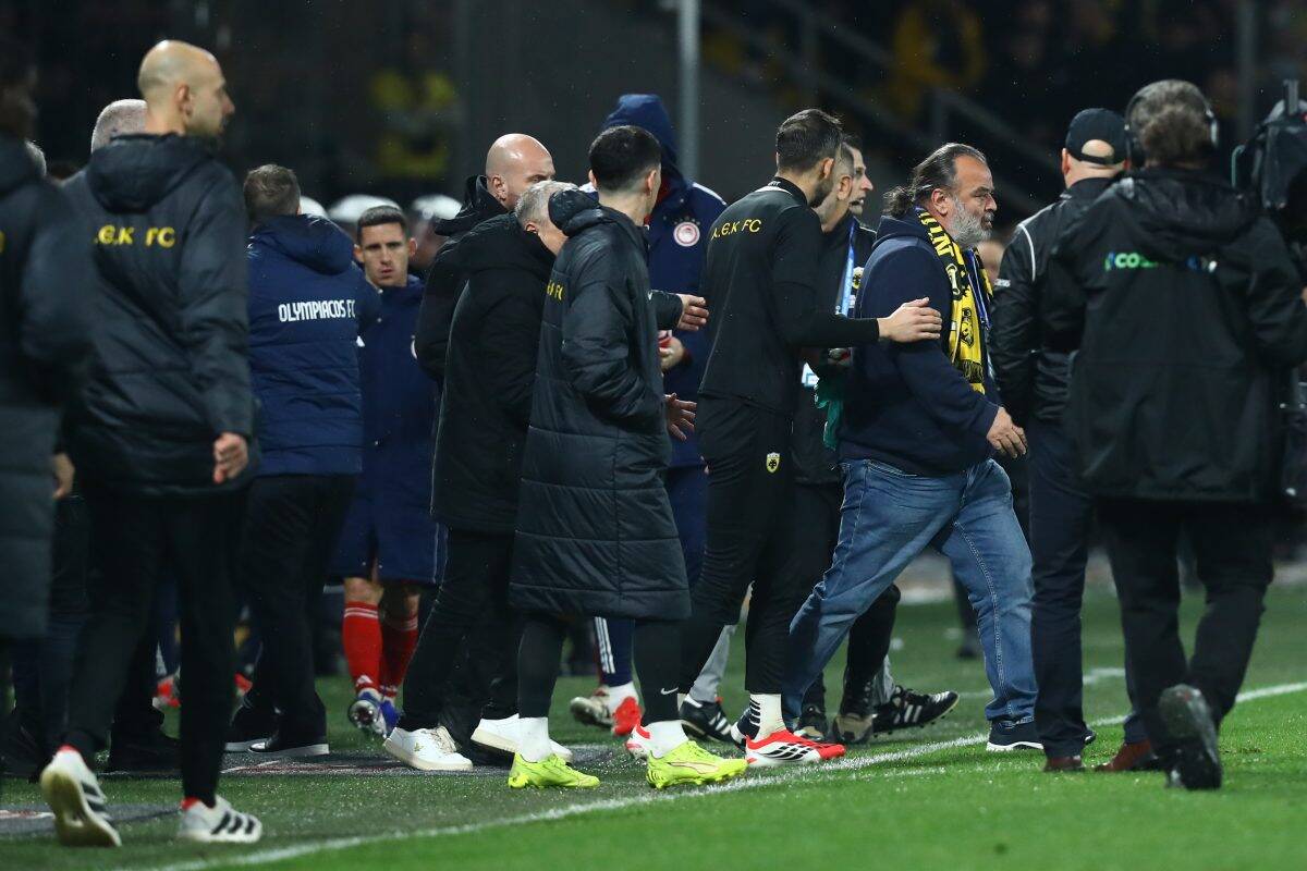 Λίγα δευτερόλεπτα μετά το σφύριγμα της λήξης, ο πρόεδρος της ΠΑΕ ΑΕΚ, Μάριος Ηλιόπουλος, βρέθηκε στον αγωνιστικό χώρο, κατευθύνθηκε προς τους διαιτητές και ήταν φανερά εκνευρισμένος, εκφράζοντας τη δυσαρέσκειά του κυρίως για την απόφαση του Μάκελι να δώσει το πέναλτι στο τέλος του αγώνα.