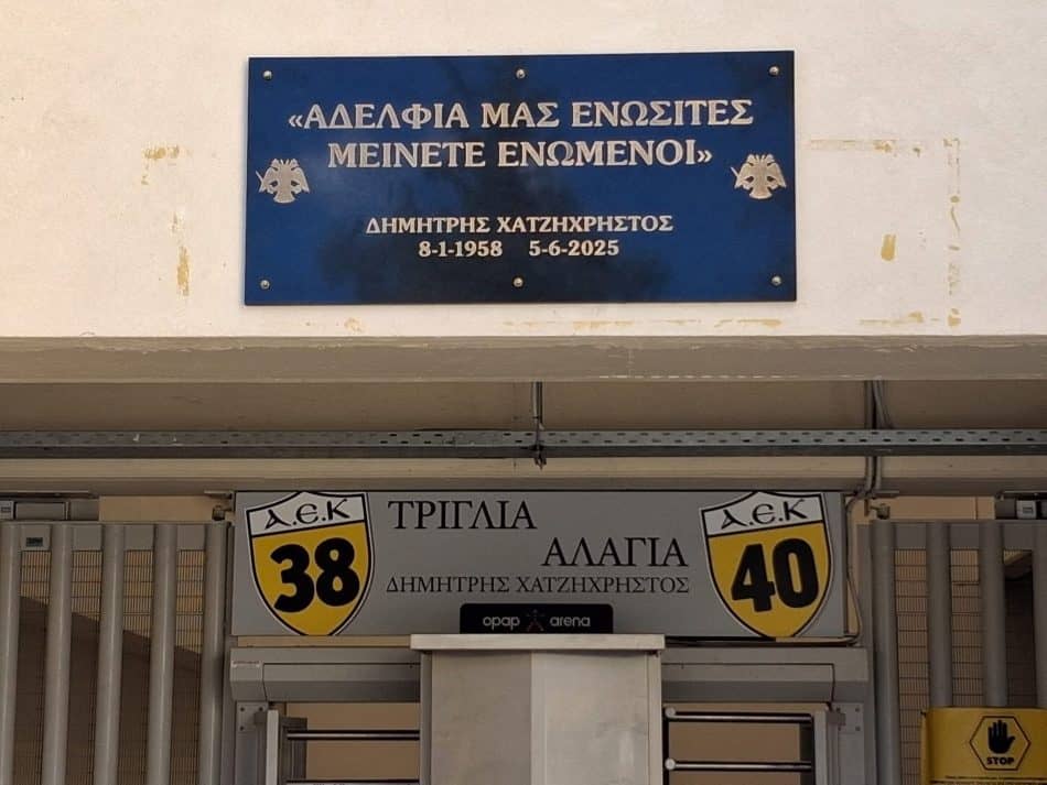 Προς τιμήν του Δημήτρη Χατζηχρήστου, τοποθετήθηκε έξω από την Θύρα 40 μια πλακέτα, η οποία αναγράφει «Αδέλφια μας Ενωσίτες μείνετε ενωμένοι». Πάνω στην πλακέτα αυτή αναγράφεται το όνομα του Δημήτρη Χατζηχρήστου και η ημερομηνία γέννησης και θανάτου του ηγέτη των φιλάθλων της original.