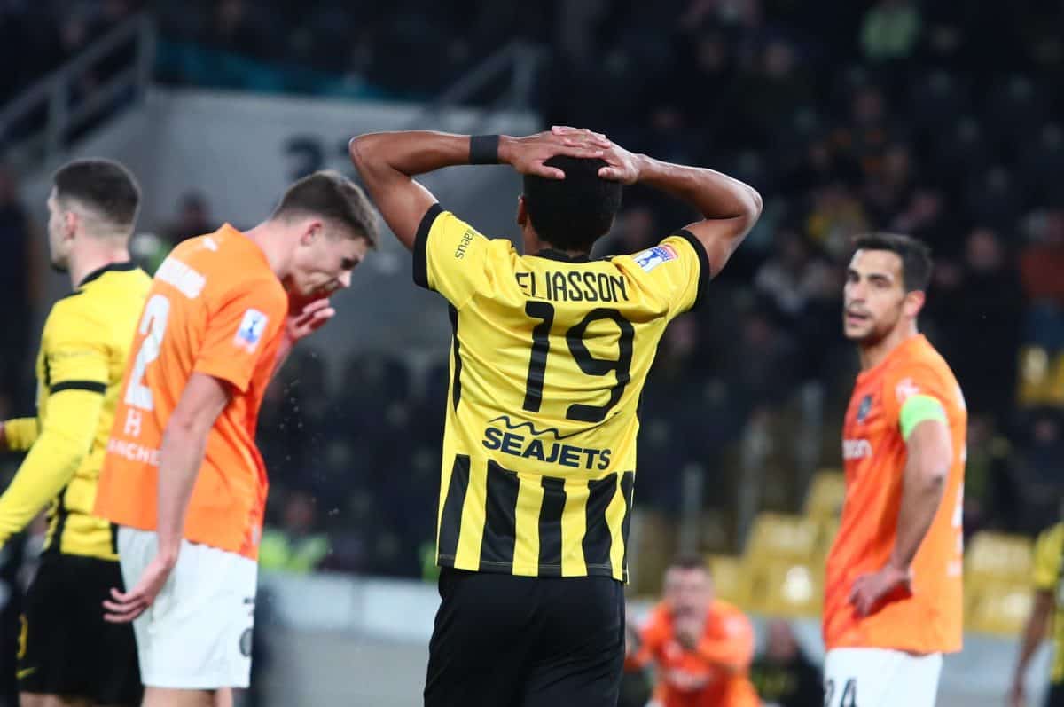 Στις καθυστερήσεις του πρώτου ημιχρόνου, η ΑΕΚ είχε με τον Νίκλας Ελίασον διπλή ευκαιρία. Ο εξτρέμ της Ένωσης στην αρχή, απείλησε με κεφαλιά, ενώ μετά με μακρινό σουτ.