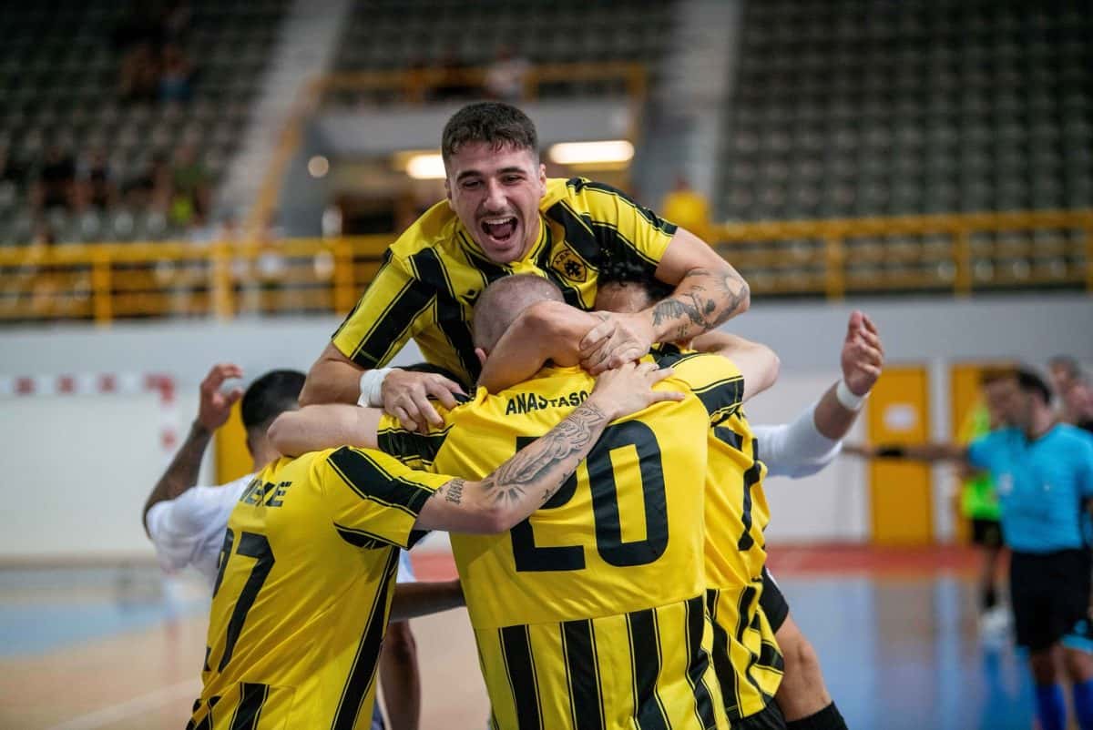 Η ΑΕΚ επικράτησε με 9-3 του Πύργου εκτός έδρας για την 10η αγωνιστική της Futsal Super League και παραμένει στην κορυφή της βαθμολογίας.