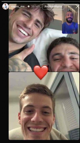 Στη βιντεοκλήση συμμετείχαν επίσης οι Λάζαρος Ρότας και Χρήστος Ζαφείρης, με τον Σιώπη να μοιράζεται τη στιγμή στα social media, συνοδεύοντάς την με μια καρδιά, δείχνοντας τη θετική τους διάθεση και την καλή σχέση που υπάρχει ανάμεσά τους.