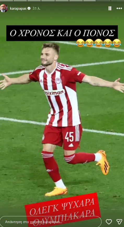 Ο Κώστας Καραπαπάς παρακολουθεί την συνέντευξη του Γιάννη Αλαφούζου και μάλιστα ο αντιπρόεδρος της ΠΑΕ Ολυμπιακός χαρακτήρισε τον ιδιοκτήτη της ΠΑΕ Παναθηναϊκός αποτυχημένο.