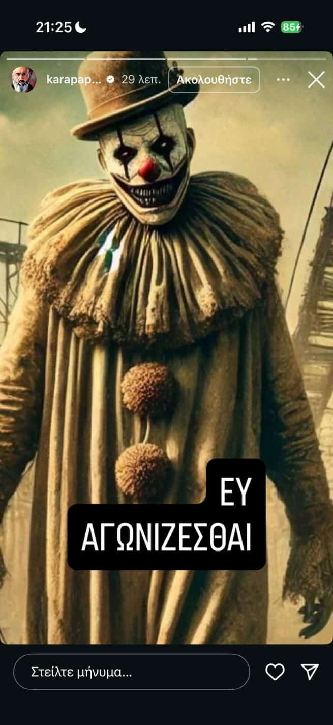 Ο Κώστας Καραπαπάς, μέσω των κοινωνικών δικτύων, σχολίασε το γκολ που ακυρώθηκε με ειρωνικό τρόπο, καθώς δημοσίευσε δύο αναρτήσεις. Στην μία ανέφερε, «Γελάει όλος ο πλανήτης», ενώ στην δεύτερη, συνοδεύοντας την με φωτογραφία κλόουν, έγραψε «ευ αγωνίζεσθαι».