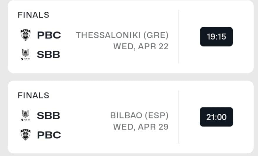 Η FIBA ανακοίνωσε τις ώρες των τελικών του Europe Cup ανάμεσα σε ΠΑΟΚ και Μπιλμπάο.