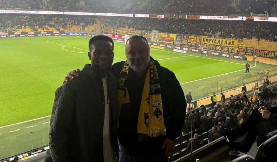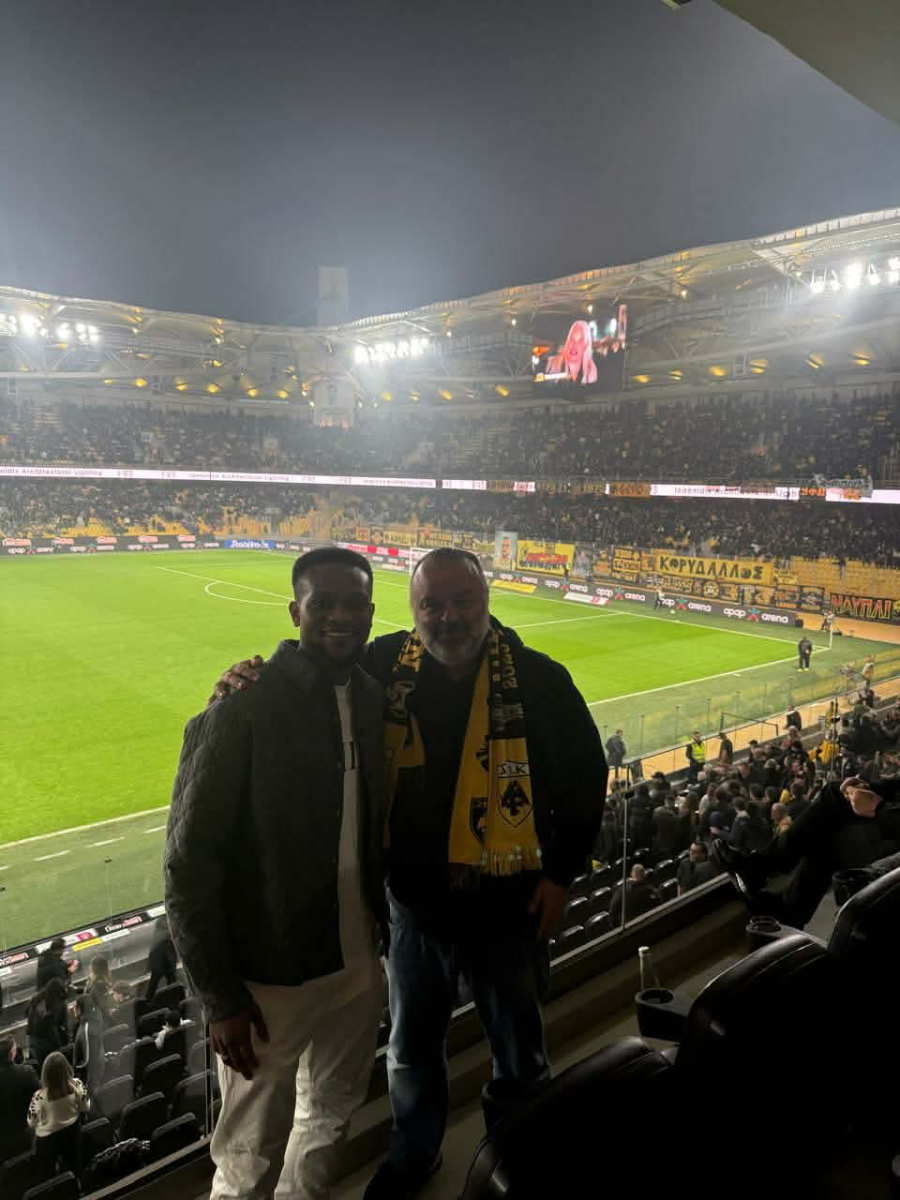 Ο σέντερ φορ από το Τρινιντάντ, που έγραψε τη δικιά του ιστορία με τη φανέλα της «Ένωσης», μάλιστα, βρίσκεται στη σουίτα του Μάριου Ηλιόπουλου και οι δύο τους φωτογραφήθηκαν στο ημίχρονο του ματς.