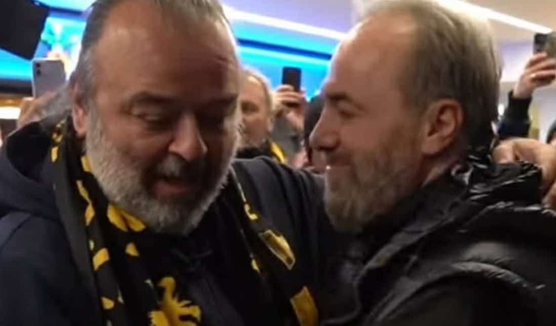 Πριν από τον αγώνα της Κυριακής με τον Παναθηναϊκό, ο Μιχάλης Κασάπης είχε την ευκαιρία να συναντήσει όχι μόνο τους φίλους της ΑΕΚ και τους παλιούς του συμπαίκτες, αλλά και τον διοικητικό ηγέτη της ομάδας, Μάριο Ηλιόπουλο, με τον οποίο είχε θερμή και εγκάρδια συζήτηση.
