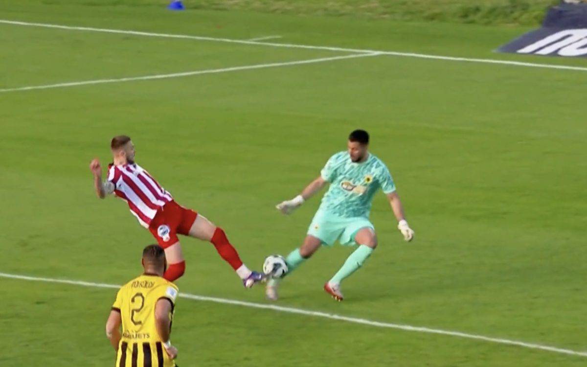 Επικίνδυνο γύρισμα έκανε ο Λάζαρος Ρότα στο 30ο λεπτό του αγώνα της ΑΕΚ με τον Πανσερραϊκό. Ο μπακ της ΑΕΚ γύρισε πίσω την μπάλα, με τον Θωμά Στρακόσια να προλαβαίνει τον αντίπαλο του, πριν γίνει περισσότερο επικίνδυνη η φάση.