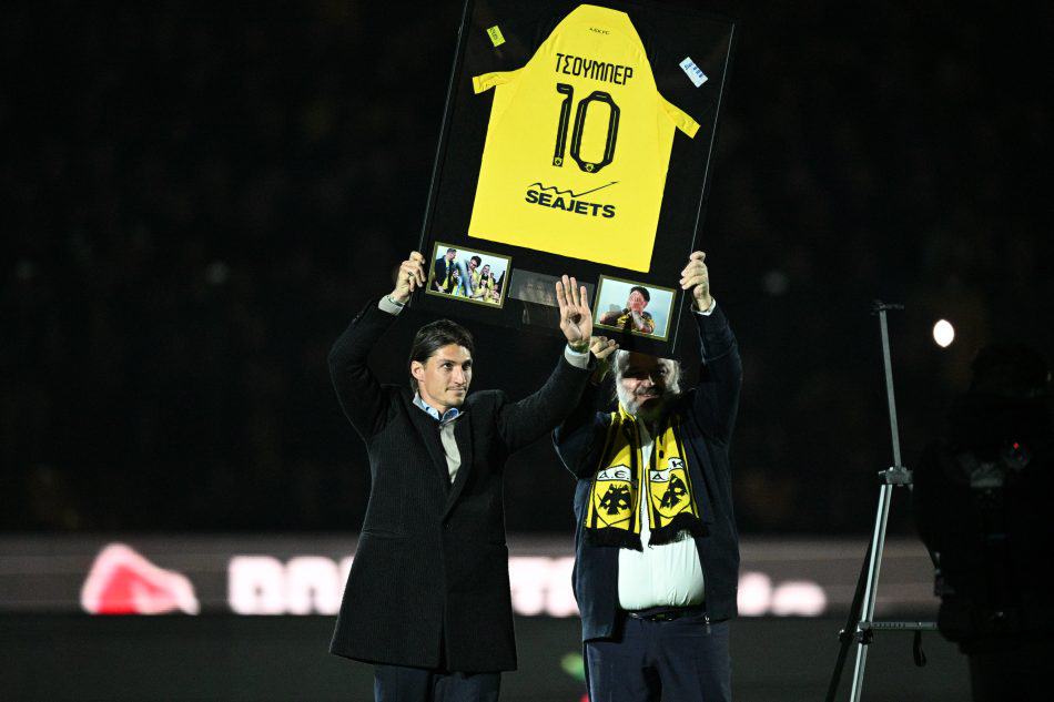 Ο αποχαιρετισμός και η τιμητική τελετή για τον Τσούμπερ πριν τον αγώνα