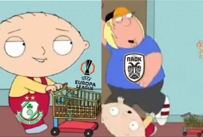 Οι ιθύνοντες της ιρλανδικής ομάδας δημοσίευσαν ένα βίντεο στον επίσημο λογαριασμό στο TikTok, όπου μέσα από ένα στιγμιότυπο της σειράς «Family Guy», αποτύπωσαν όσα συνέβησαν στους μεταξύ τους αγώνες με τους Θεσσαλονικείς.