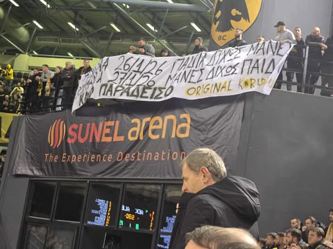 Η ΑΕΚ αντιμετωπίζει την Άλμπα Βερολίνου στην Sunel Arena, για την 2η αγωνιστική τoυ BCL. Μία μόλις μέρα από το τραγικό δυστύχημα στην Ρουμανία, με επτά νεκρούς, οπαδούς του ΠΑΟΚ η Original 21 Κορυδαλλού θέλησε να τιμήσει τους ανθρώπους αυτούς με ένα πανό στην κερκίδα των οργανομένων.