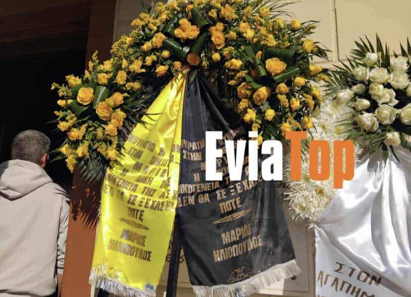 Πλήθος κόσμου βρέθηκε στον Ιερό Ναό Πέτρου και Παύλου στην Χαλκίδα, για να αποχαιρετήσουν τον 20χρονο Μάριο. Στεφάνι προς την μνήμη του αδικοχαμένου φίλου της «Ένωσης» έστειλε και ο ιδιοκτήτης της ΠΑΕ ΑΕΚ, Μάριος Ηλιόπουλος.