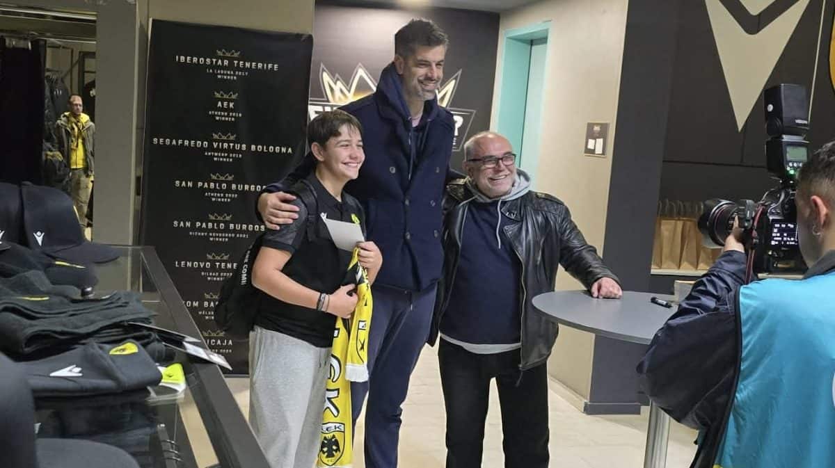Ο γιος του προπονητή της ΑΕΚ βρίσκεται στα VIP και φωτογραφίζεται με τον κόσμο της ΑΕΚ, με την ουρά να είναι μεγάλη, δείχνοντας την αγάπη και τον σεβασμό προς το πρόσωπό του.