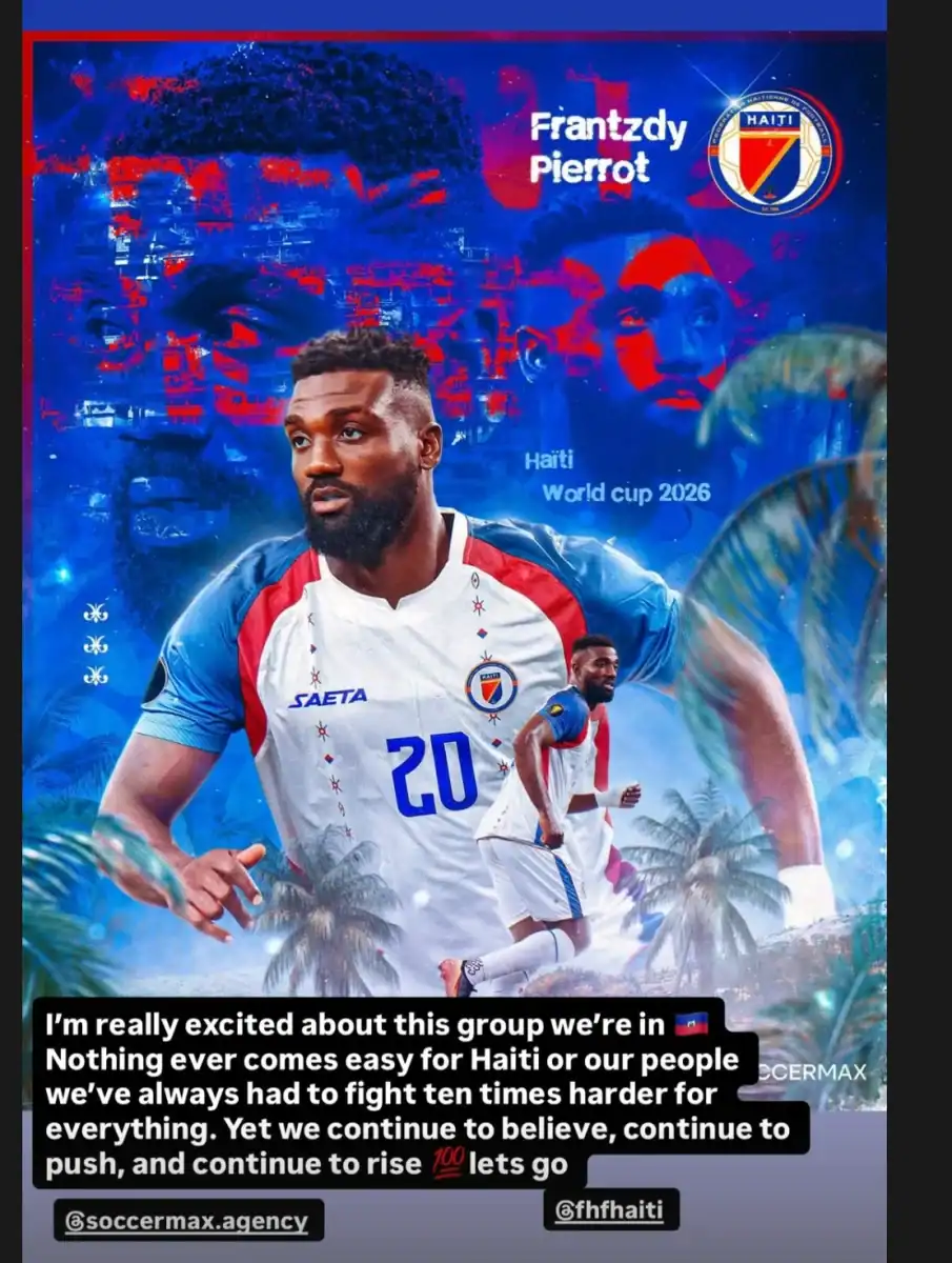 «Είμαι πολύ ενθουσιασμένος με τον όμιλο στον οποίο βρισκόμαστε. Τίποτα δεν έρχεται εύκολα για την Αϊτή ή τον λαό μας. Πάντα έπρεπε να παλέψουμε δέκα φορές περισσότερο για τα πάντα. Παρ’ όλα αυτά συνεχίζουμε να πιστεύουμε, να προχωράμε μπροστά και να ανεβαίνουμε. Πάμε!»
