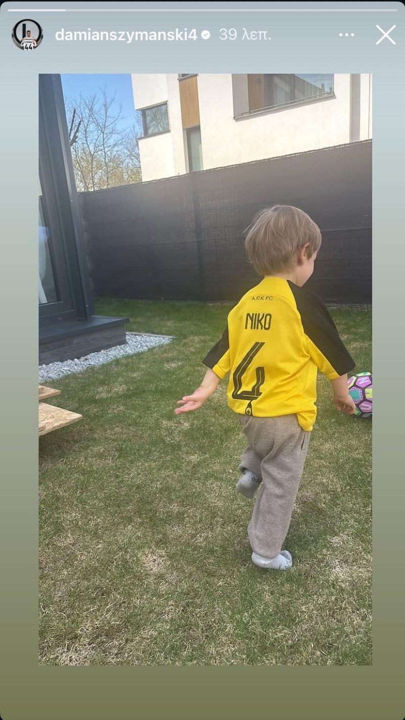 Ο Νταμιάν Σιμάνσκι έχει αποχωρήσει από την ΑΕΚ από το περασμένο καλοκαίρι, ωστόσο, δείχνει να μην ξεχνάει την προηγούμενη του ομάδα, που πέρασε εκεί για 5 και πλέον χρόνια. Σε ένα στόρι του Πολωνού, αποτυπώνεται ο γιός του να παίζει στο σπίτι τους με την φανέλα της ΑΕΚ, όπου πίσω αναγράφεται το όνομα του παιδιού του και το νούμερο που φορούσε ο ίδιος, όταν αγωνιζόταν με τα «κιτρινόμαυρα».