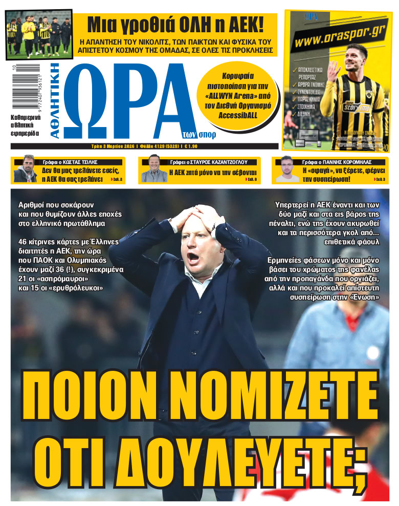 Η πρώτη σελίδα της «Ώρας» στις 03/03/2026