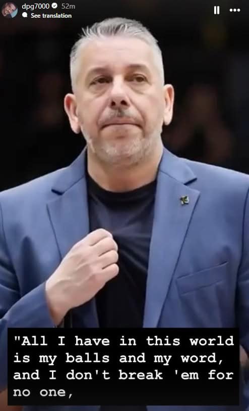 Ο Δημήτρης Γιαννακόπουλος δεν άφησε αναπάντητα τα όσα δήλωσε ο δικηγόρος Μιχάλης Δημητρακόπουλος το μεσημέρι της Πέμπτης, στην έκτακτη συνέντευξη Τύπου της ΚΑΕ Μαρούσι. Ο ισχυρός άνδρας της ΚΑΕ Παναθηναϊκός επέλεξε να απαντήσει μέσω των social media, αναρτώντας φωτογραφία του Ηλία Παπαθεοδώρου και συνοδεύοντάς τη με φράση από την ταινία «Scarface»: «Ό,τι έχω σε αυτόν τον κόσμο είναι οι… μπάλες μου και ο λόγος μου και δεν τα παρατάω για κανέναν».